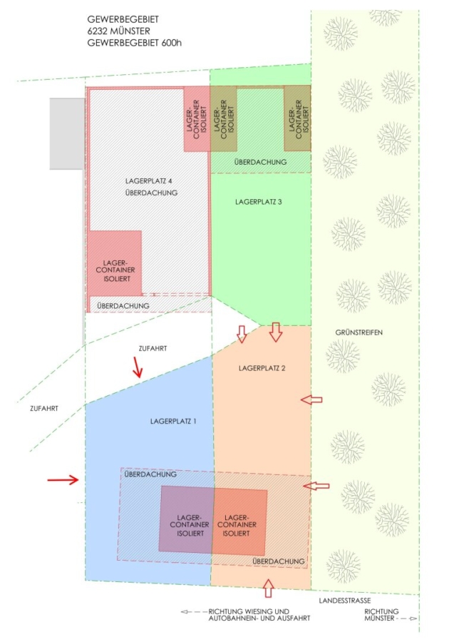 Die Fläche eignet sich hervorragend für kleine selbsständige Handwerksbetriebe mit Lager und Bürobedarf, Autohandel (ohne Reparatur) samt überdachtem Ladeplatz, Lagerplatz etc.